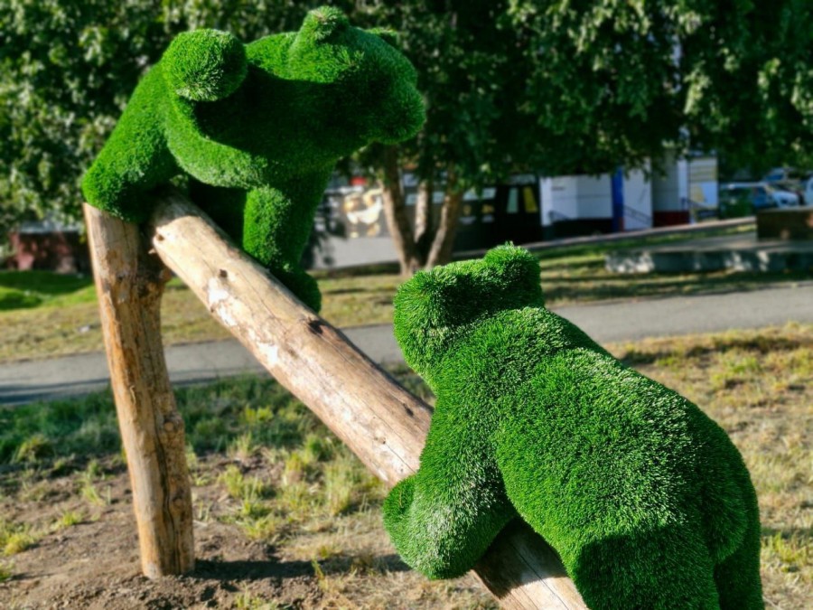Топиарные фигуры установлены в сквере на углу улиц Жуковского и Калининской.